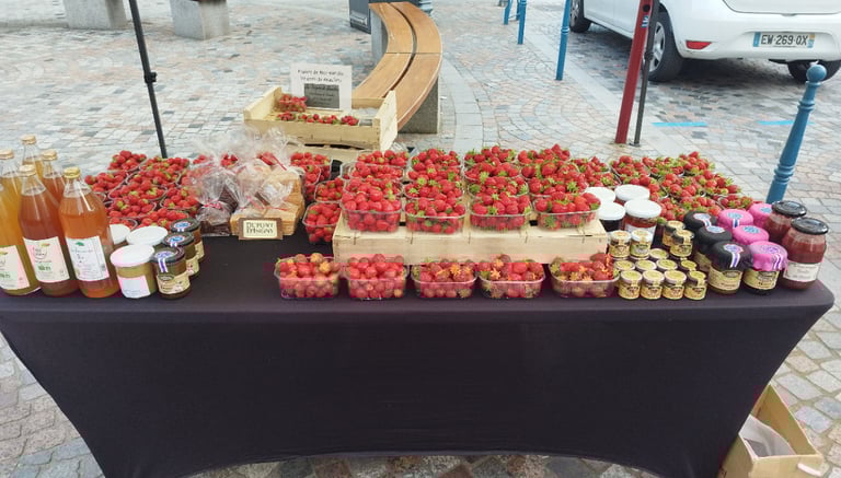 Nous sommes également fiers de récolter et de vendre des fraises provenant de Pithienville et des Vergers de Beaulieu à Bardouville, où chaque baie est soigneusement sélectionnée pour sa fraîcheur et sa qualité.